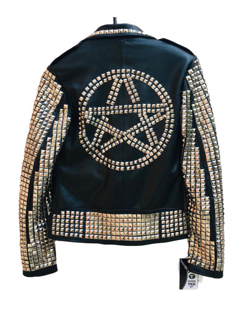 Handmade Black Leather Studded Punk Style Jacket For Women