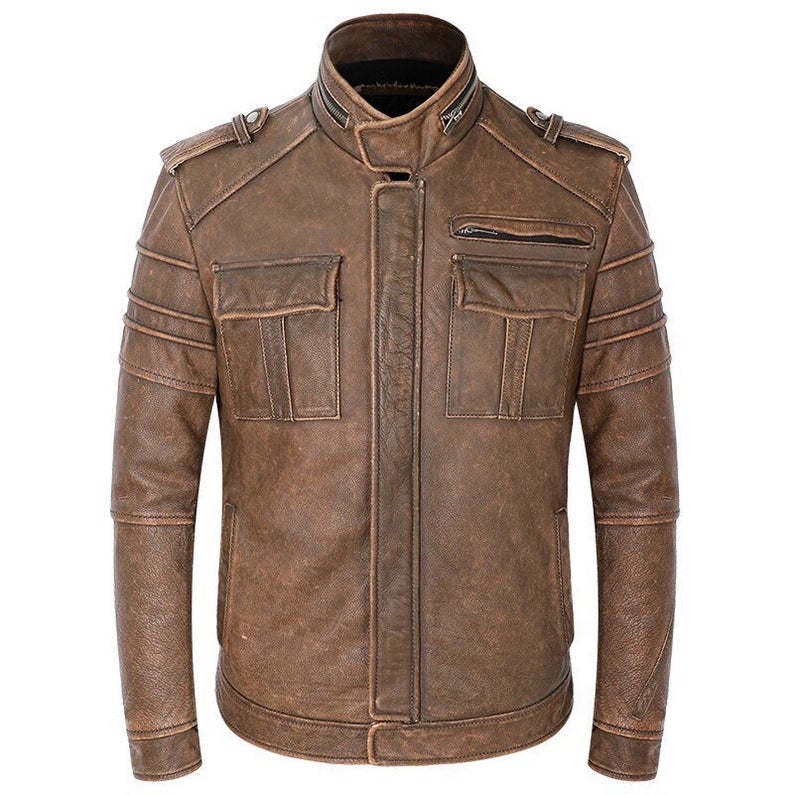 Vintage brown american style distressed leather jacket men's genuine cowhide spring biker's coat