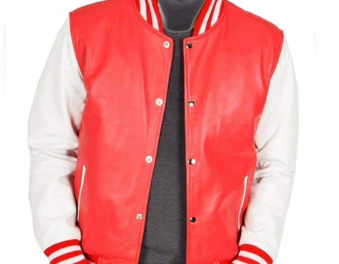 NEW Mens Real Leather Red / White Bomber Jacket Genuine Lambskin Varsity Jacket