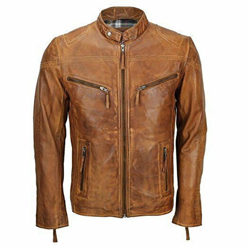 Men's Cafe Racer Biker Vintage Motorcycle Brown Distressed 100% Genuine Cowhide Leather Jacket