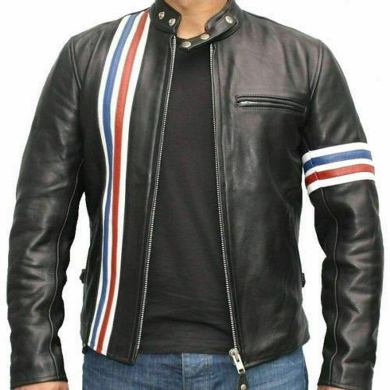 Peter Fonda Easy Rider Black Motorcycle Biker Real Cowhide Leather Jacket