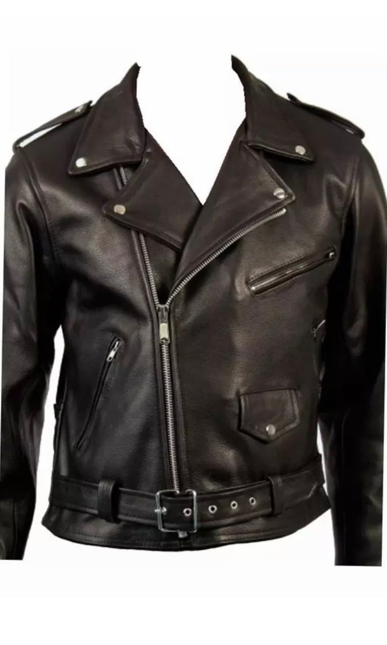 Mens Black Genuine Leather Classic Brando Bluf Biker Motorbike Jacket