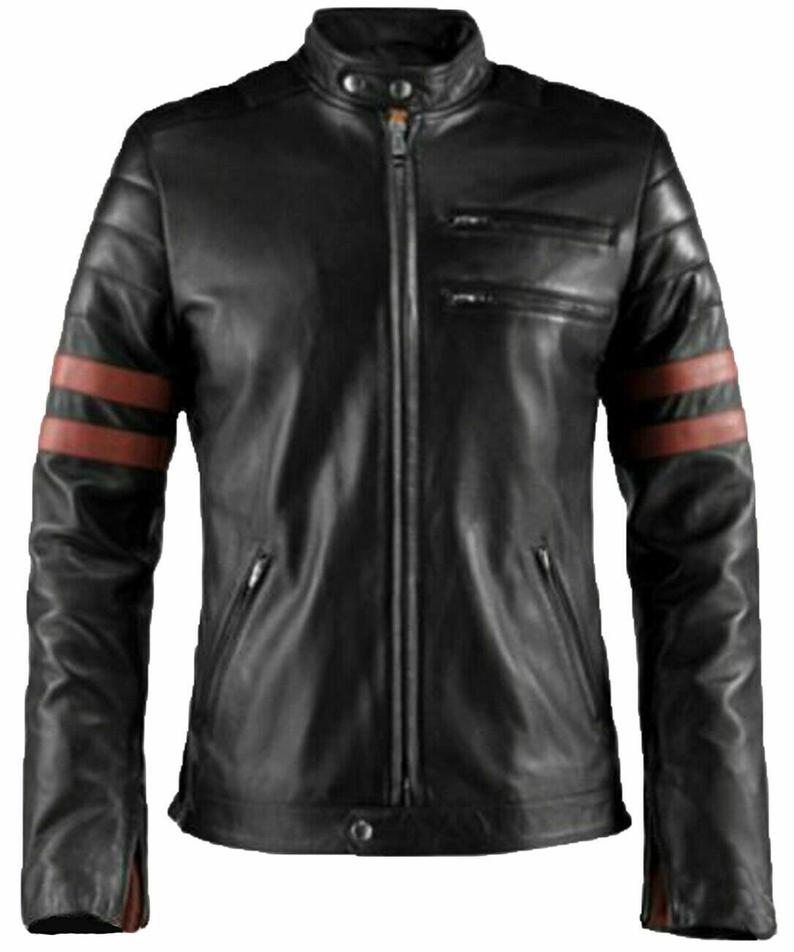Mens Genuine Black Leather Jacket Motorbike Biker Rider Zipper Jacket Motorcycle Coat