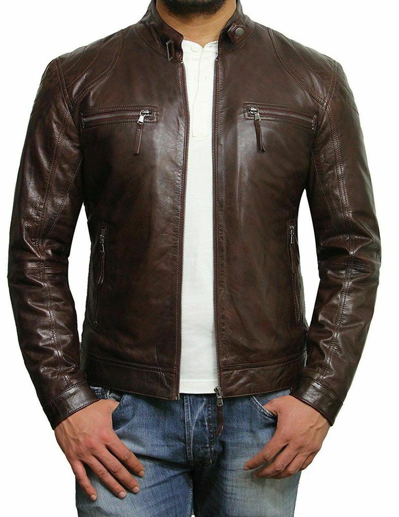 Mens Real Brown Leather Jacket Motorbike Jacket Motorcycle Biker Club Casual Wear Jacket