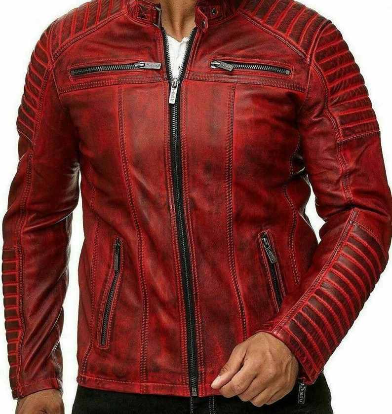 Mens Customized Handcrafted Genuine Lambskin Vintage 100% Leather Jacket