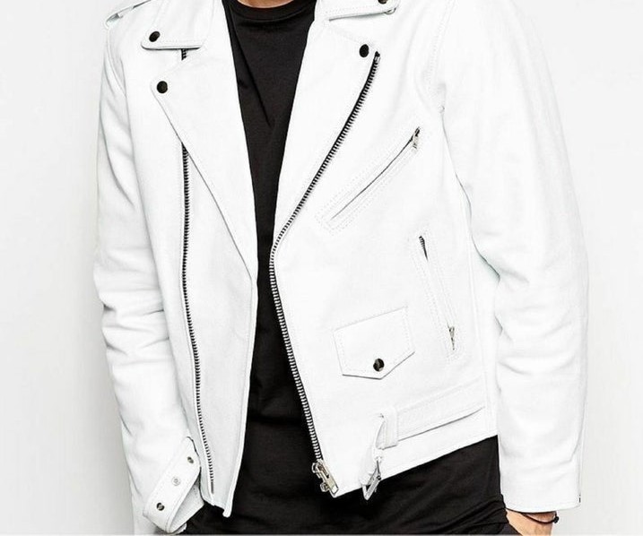 Real Genuine Lambskin Leather New Men's Motorcycle Slim fit White Biker Jacket
