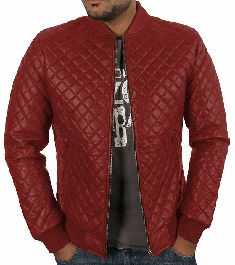 Genuine Lamskin Leather Mens Red Quilted Leather Jacket