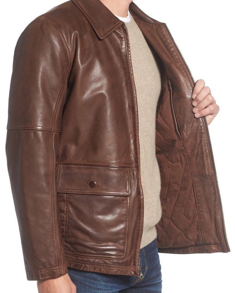 Men's Real A2 Flight Pilot Bomber Distressed Antique Brown Real Genuine Leather Jacket simple two pockets jacket