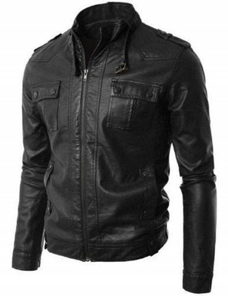 New Mens Lambskin Black Leather Jacket Collar Jacket Motorcycle Style Leather Jacket