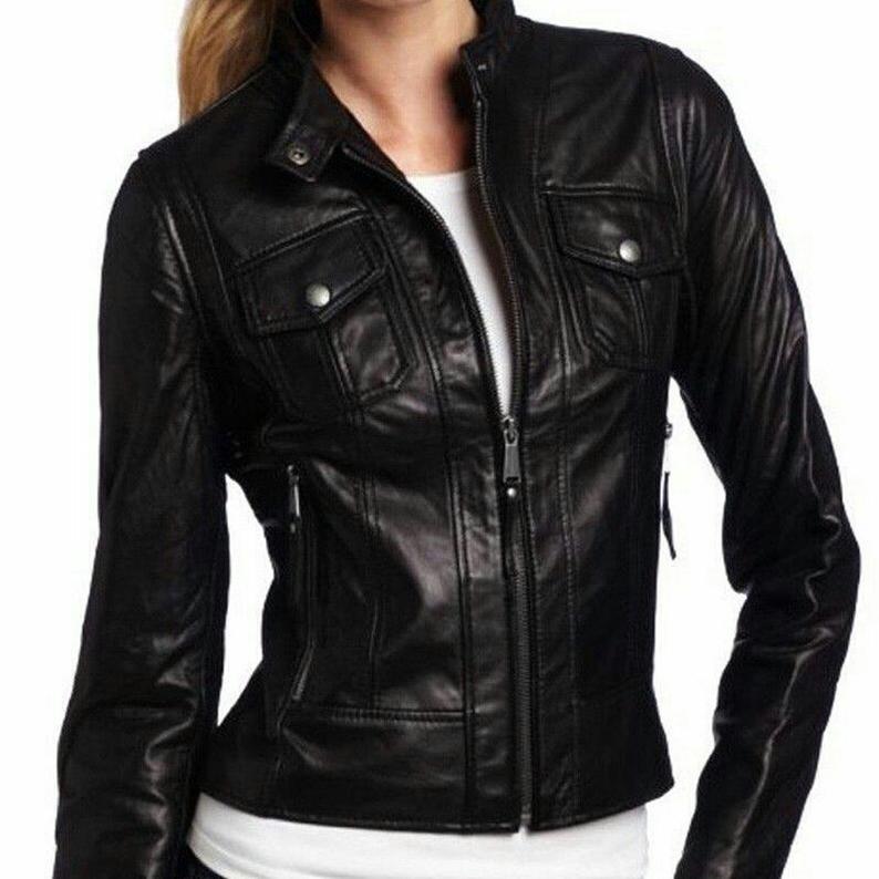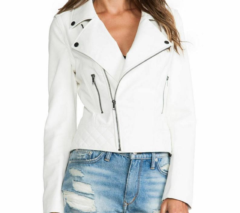 NEW 100% Genuine Soft Lambskin Leather White Cropped Motor Biker Slim Fit Jacket