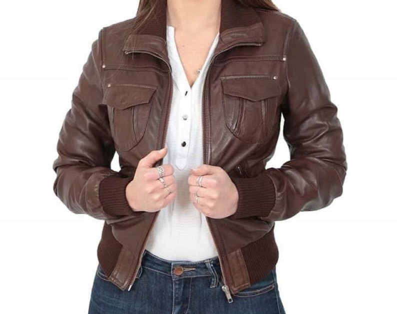 Brown Leather Bomber Jacket,women jacket,vintage jacket,boho jacket