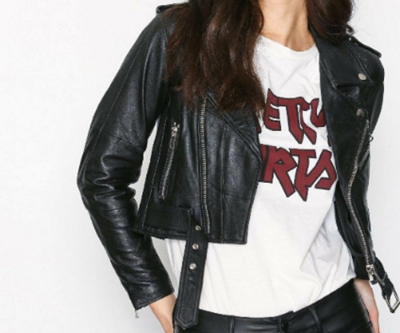 New Black Womens Lambskin Leather Cropped Jacket Biker Retro Motorcycle Slim Fit Womens
