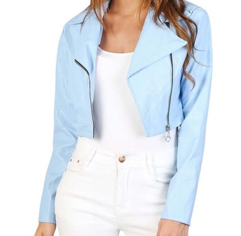NEW Womens CASUAL Light blue Leather holiday jacket Vintage Motorcycle Jacket
