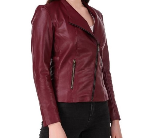 Ladies Genuine Lambskin Leather Biker Jacket Red Cherry Colour Italian Style Leather Jacket