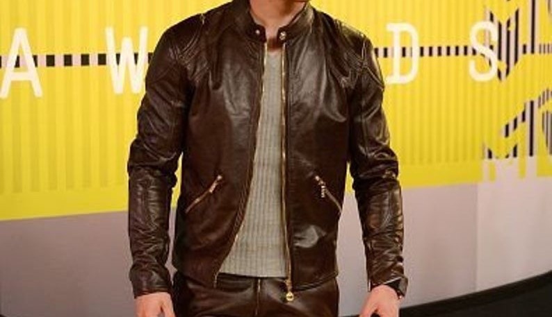 Cafe Racer Biker Vintage Retro Leather Jacket Men Motorcycle Distressed Slim with golden zippers