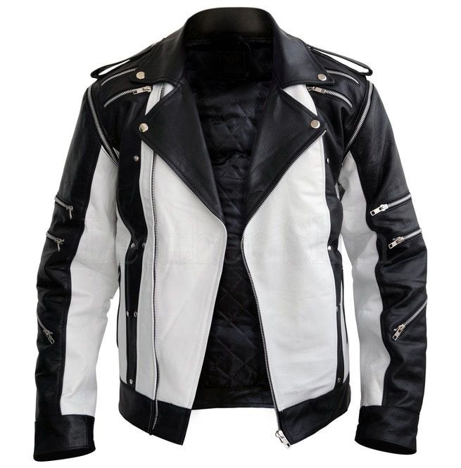 Black & White Zippers Metal Stud Lapel Collar Thriller Leather Jacket