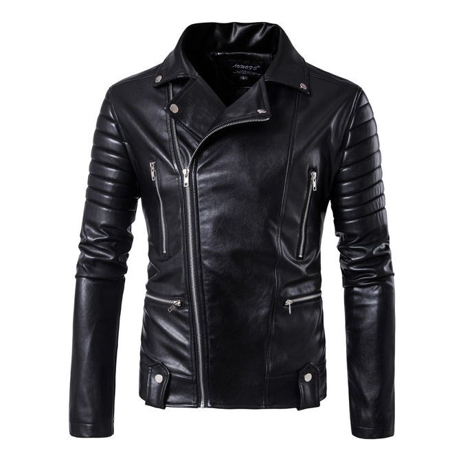 Men's Punk Multi Zipper Ruched Sleeve Faux Leather Jacket