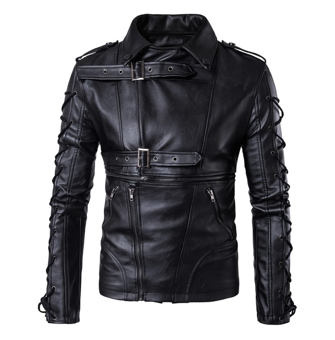 Men Pu Leather Jacket Coat Fashion Motorcycle Outwear Coats Slim Fit Tops