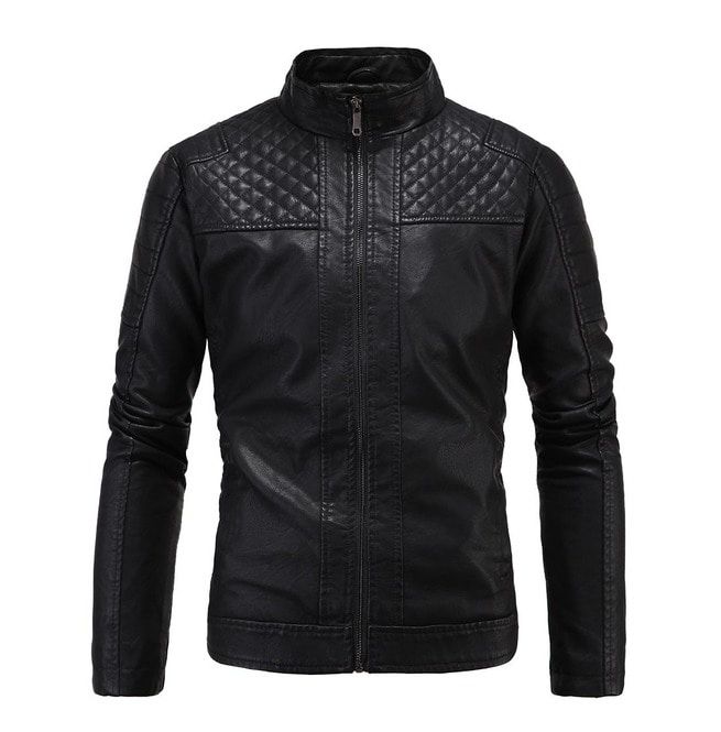 Men's Stand Collar Zip Cuff Thick Faux Leather Zipper Jacket