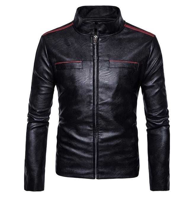 Men's Stand Collar Pocket Zipper Faux Leather Jacket