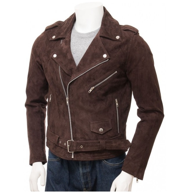 Men's New Brown Suede Biker Motorcycle Jacket, Handmade Fashion Mens Jacket