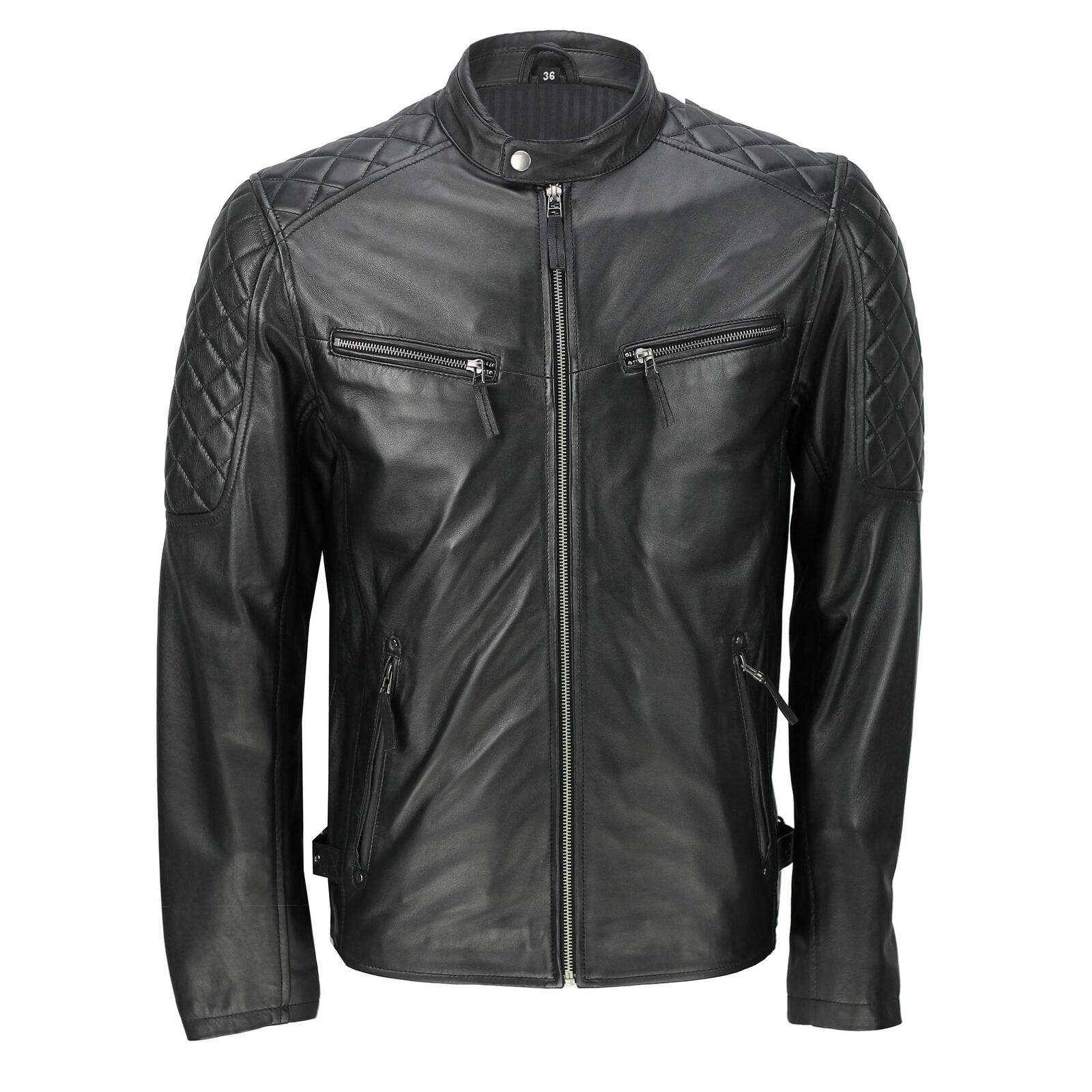 Mens Black Real Soft Sheep Leather Classic Smart Casual Biker Zip Bomber Jacket