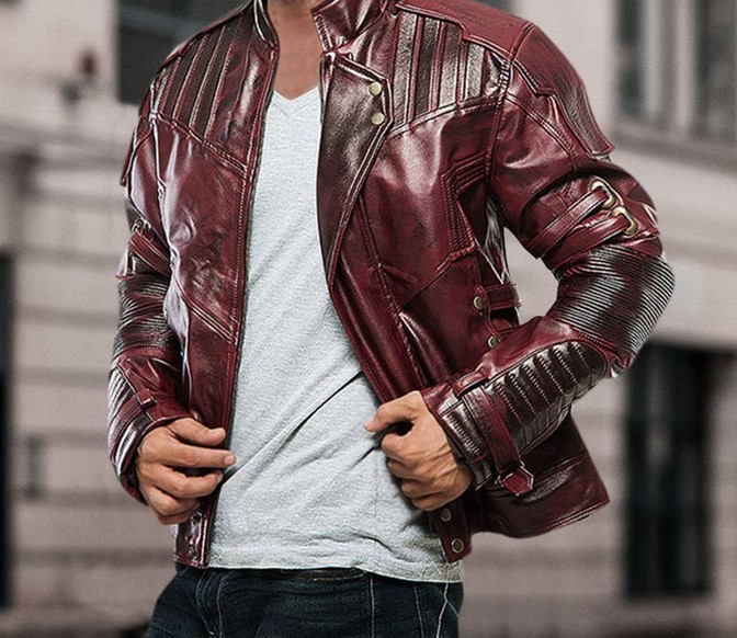 Mens Guardians of the Galaxy Maroon Distressed Leather Jacket Star Lord Costume