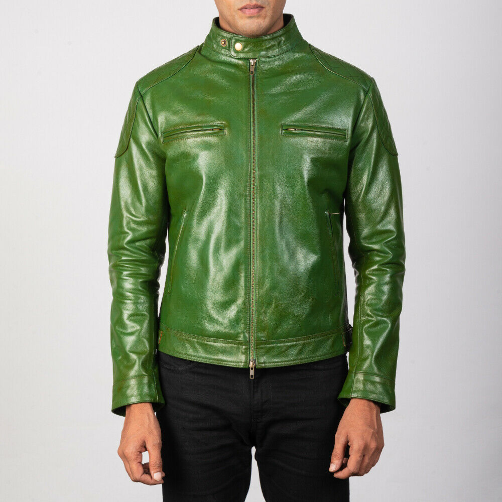 ATTRACTIVE MOTO RACER NICE LOOKING GREEN COLOR GENUINE LEATHER MEN BIKERS JACKET