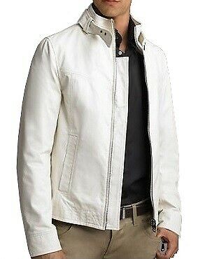Handmade White Color Men Motorbike Fashion Real Leather Racers Moto Jacket