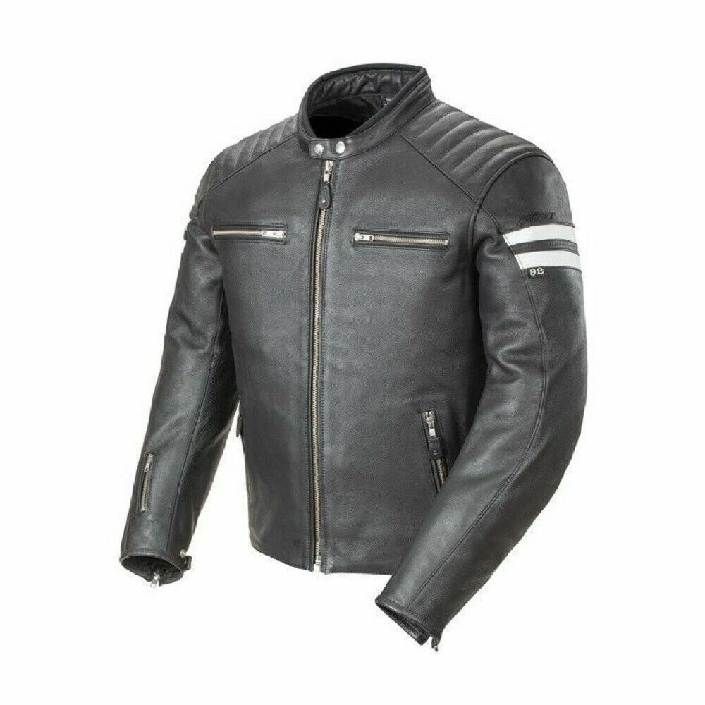 FASHIONABLE DUSTY GREY WHITE STRIPS QUILTED SHOULDER PREMIUM LEATHER MEN JACKET