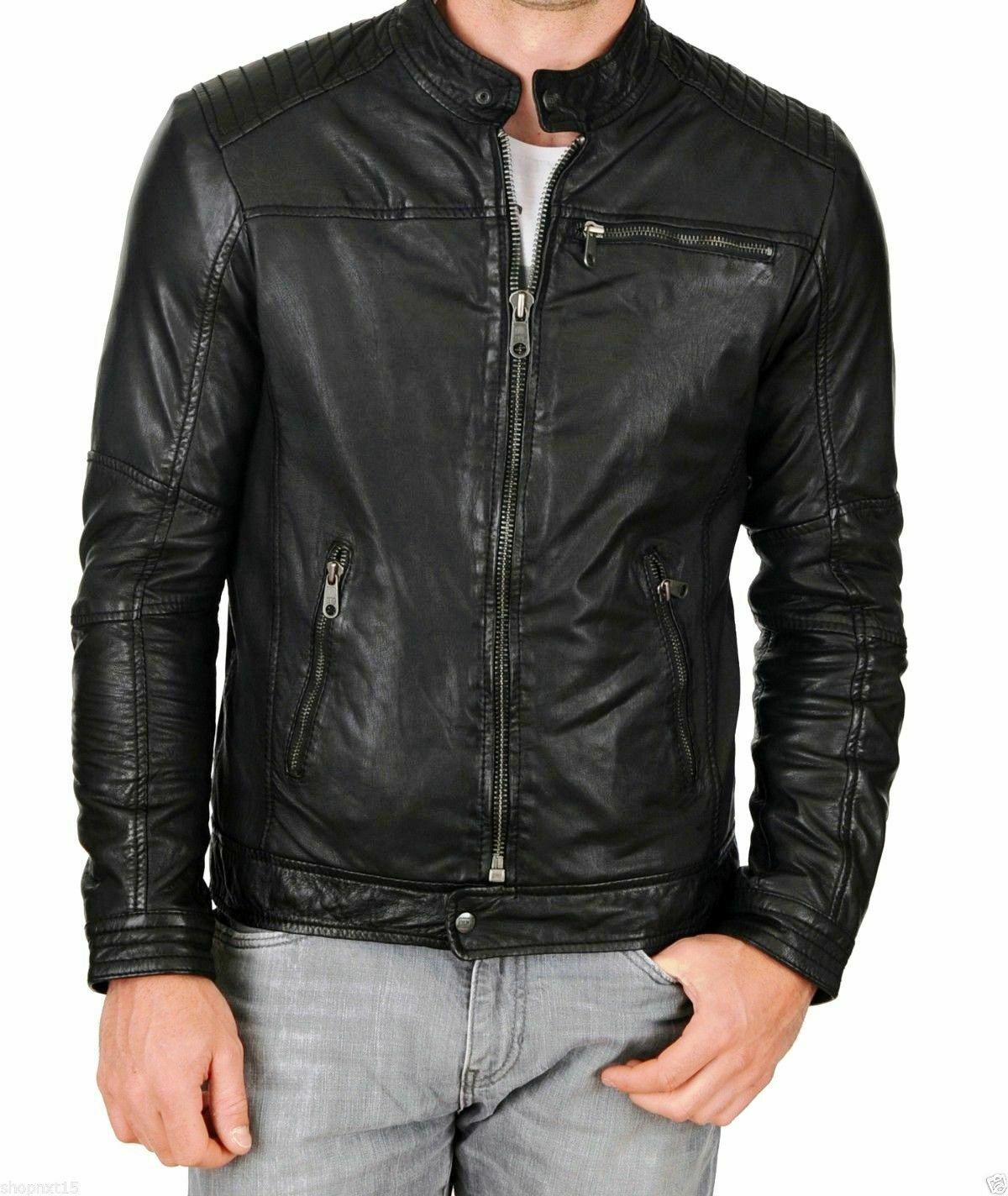 Men Black Leather Jacket Biker Racer Soft Lambskin Jacket