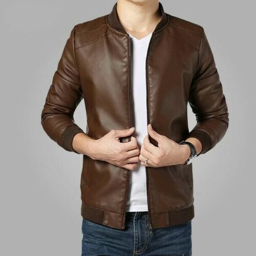 Men's Leather Genuine Lambskin Jacket Dark Brown Zip Up Jacket