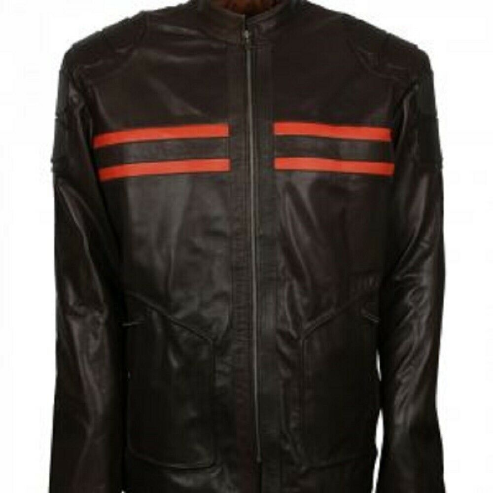 Men's Genuine Lambskin Leather Jacket Brown Biker Slim Leather Stripes Jacket