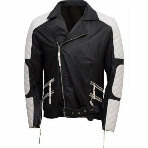 Men's Leather Jacket Genuine Lambskin Black & White Quilted Designed Jacket