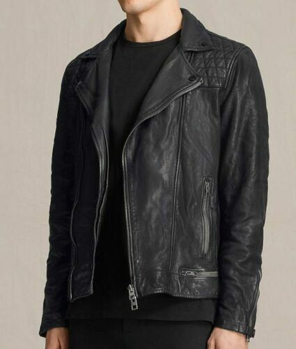 Men's Genuine Lambskin Leather Solid Biker Jacket Black Motorcycle