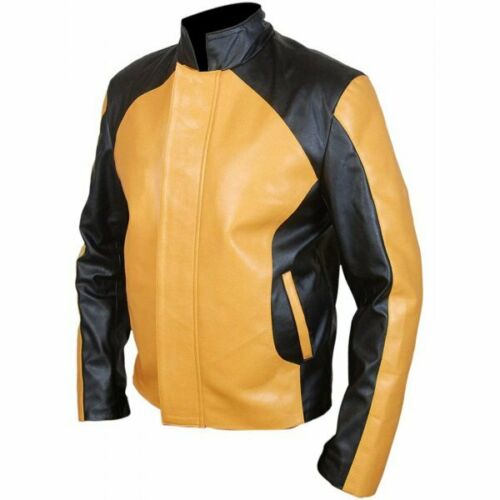Men's Leather Jacket Genuine Lambskin Biker Leather Black & Yellow Jacket