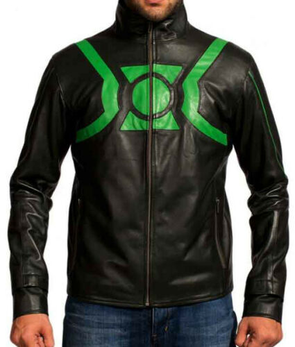 Men's Leather Jacket Genuine Lambskin Leather Green Lantern Leather Jacket Black