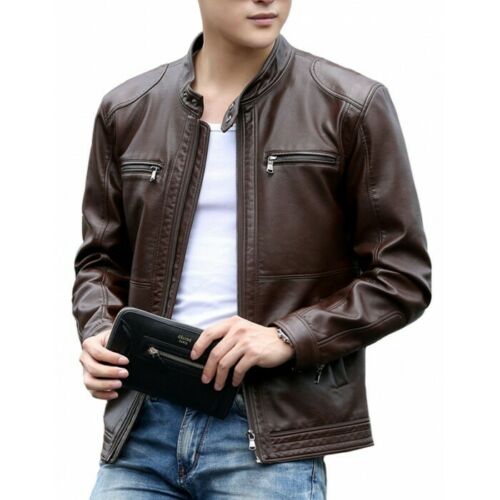 Men's Leather Jacket Genuine Lambskin Brown Body Fit Biker Men Jacket