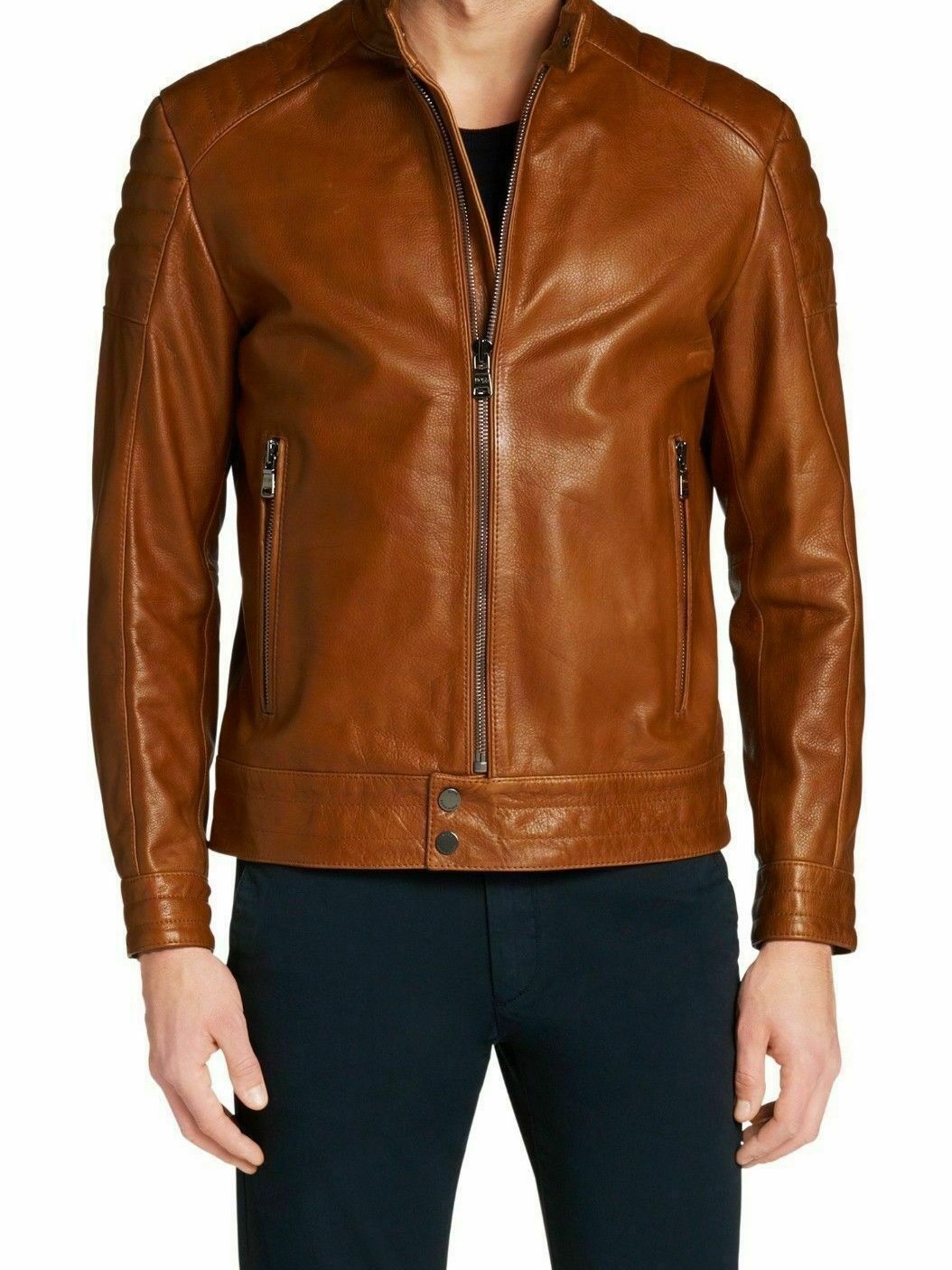 Men's Leather Jacket Genuine Lambskin Tan Biker Leather Vintage Jacket Men s