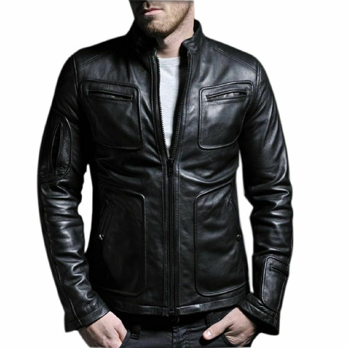 Classic Men's Authentic Leather Black Jacket Motorcycle Rider Skinny