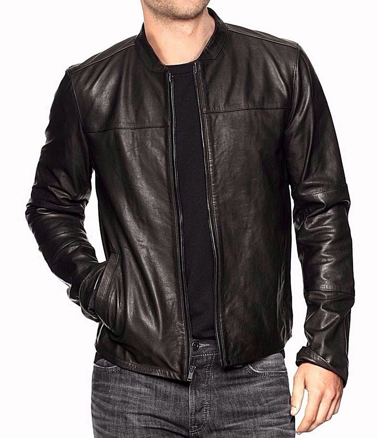 Mens Black Leather Jacket Motorcycle Genuine Lambskin Slim Fit Biker Jacket