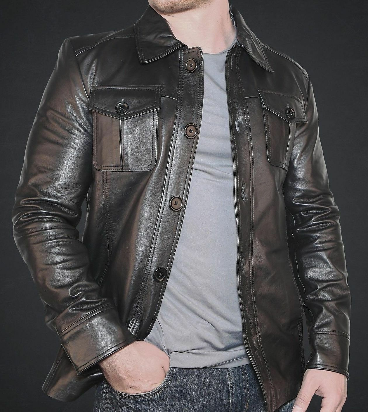 Mens Black Leather Shirt Jacket Motorcycle Genuine Lambskin Jacket