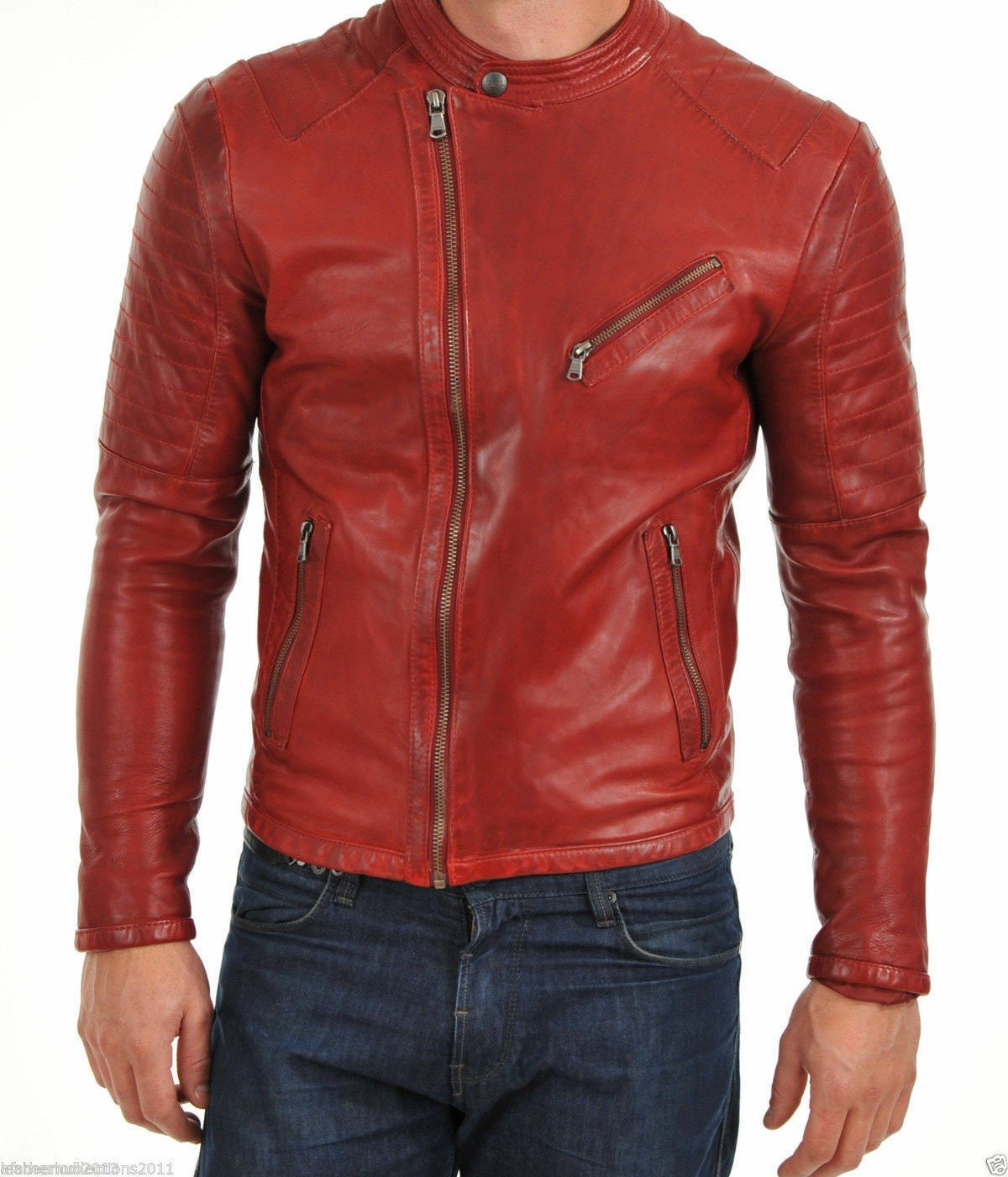 New Men's Leather Jacket 100% Genuine Lambskin Leather Moto fit Biker coat