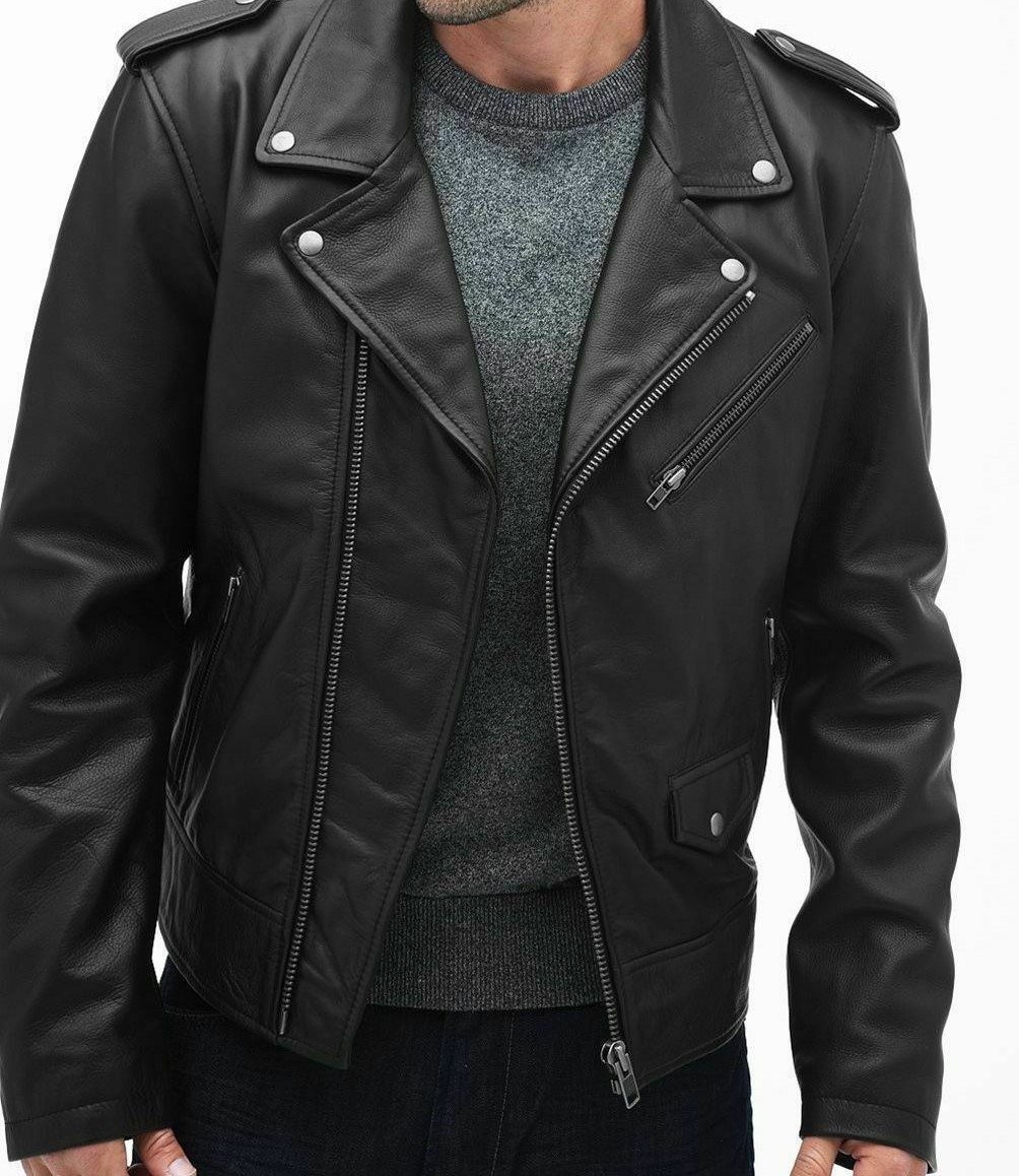 Men's Real Lambskin Leather Jacket Shirt Biker Motorcycle