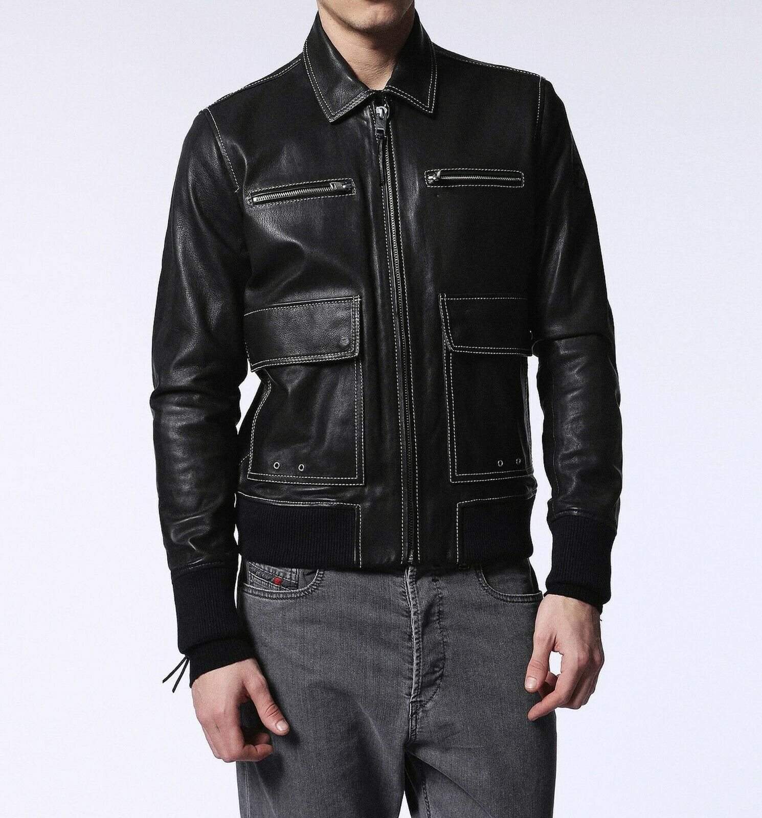 Men's Real Leather Jacket Biker Motorcycle Genuine Lambskin Black