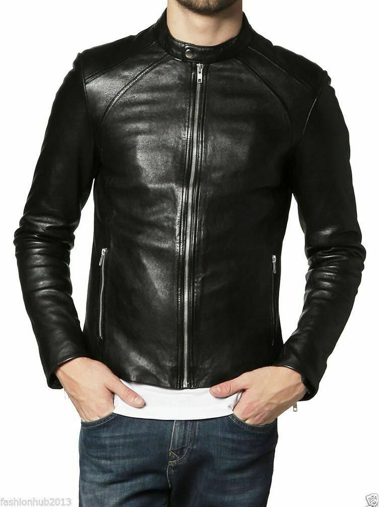 Mens Western Fashion Leather Jacket Motorcycle Biker Real Lambskin