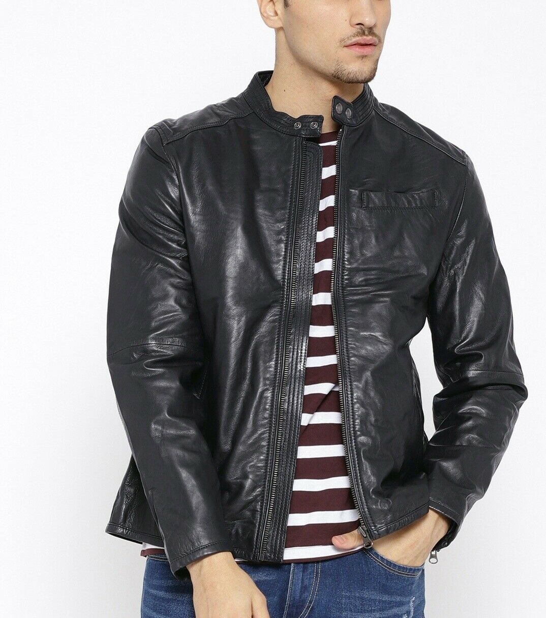 Men's Customize Biker Jacket 100% Genuine Soft Lambskin Black Leather