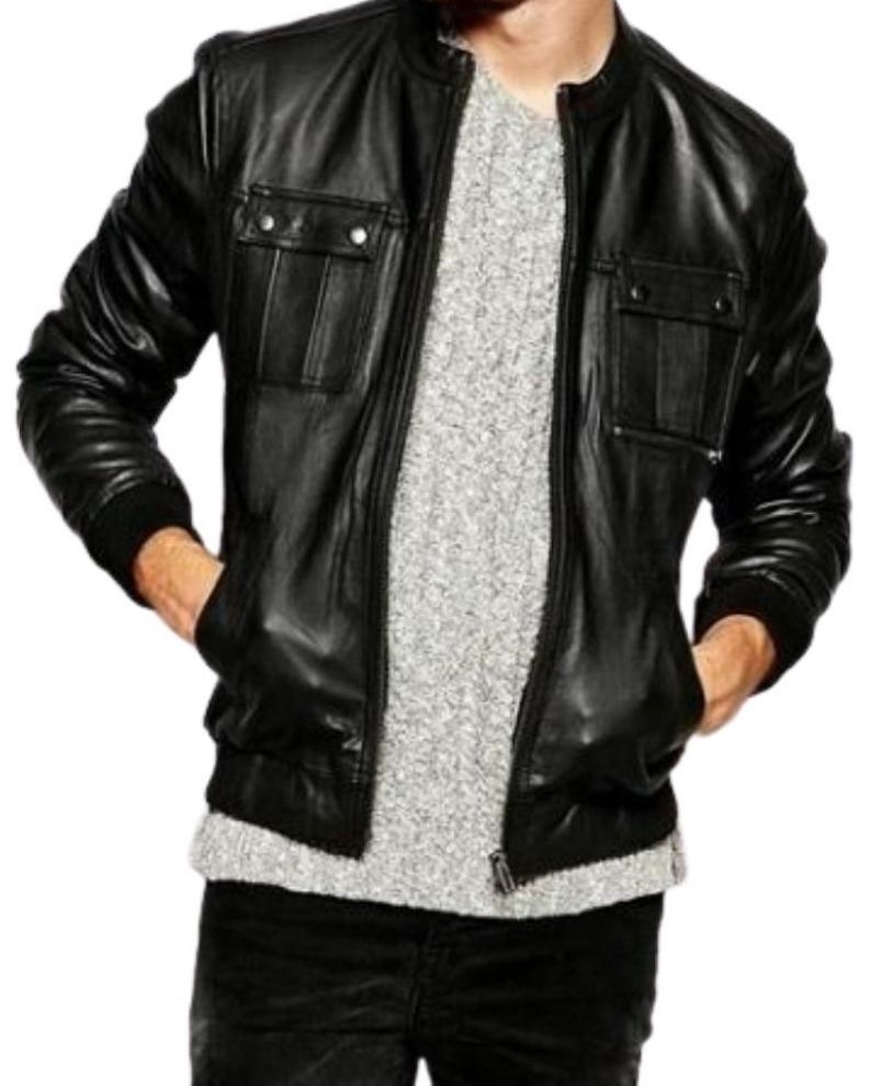 Mens Genuine Leather Jacket Biker Motorcycle Retro Classic Cafe Racer Vintage Leather Black