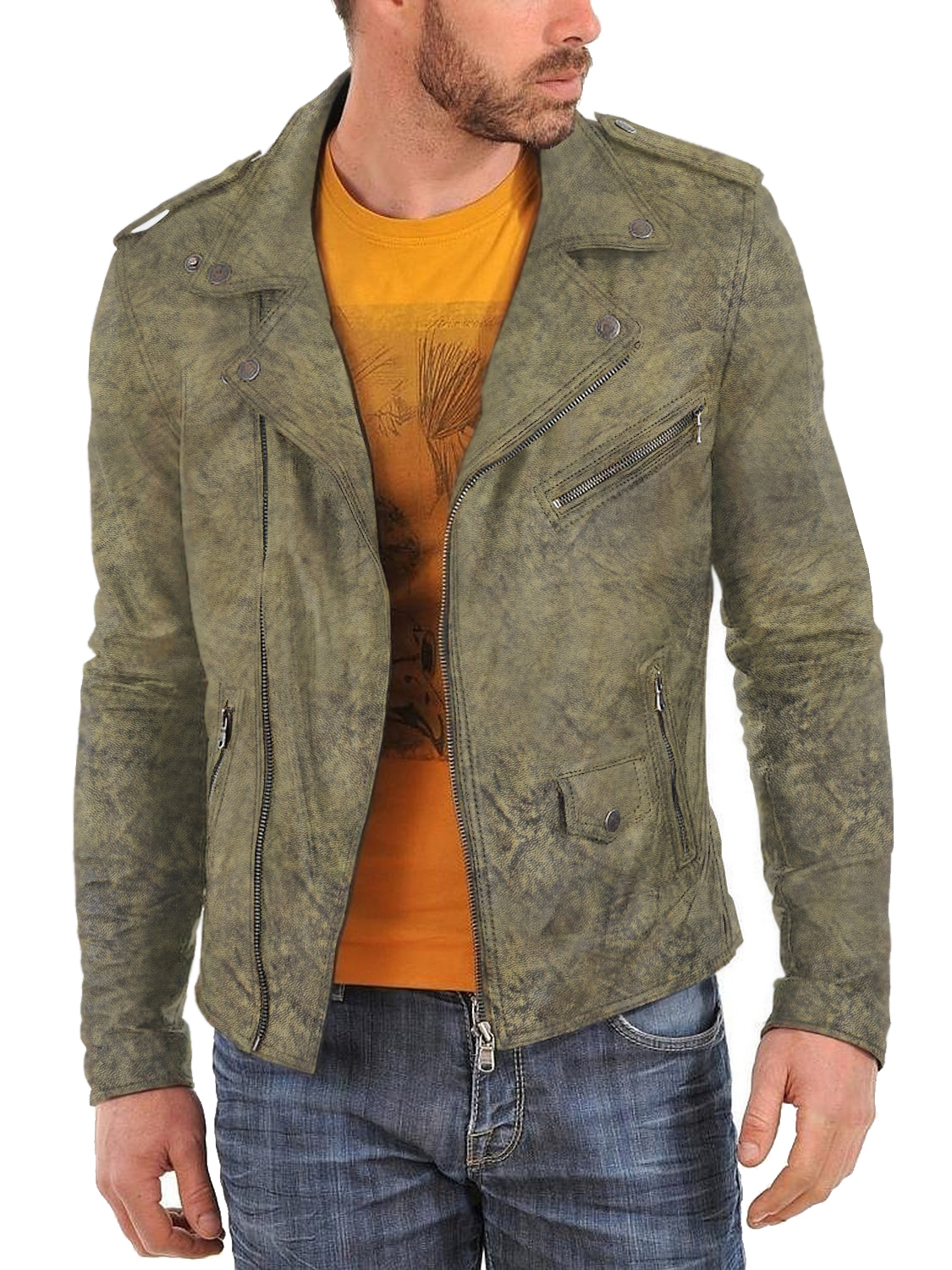 New Leather jacket, Genuine Jungle lambskin leather, distressed Motorcycle