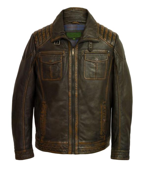 Mens Leather Jacket Brown Shaded Quilted Slim Fit Style Leather Jacket